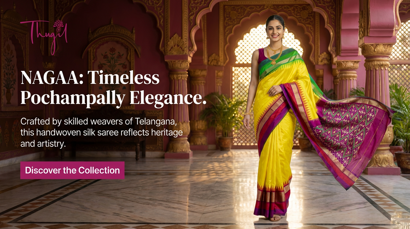 Punya – Pure Raw Silk Pochampally Saree with Temple Ikkat Border & Pallu