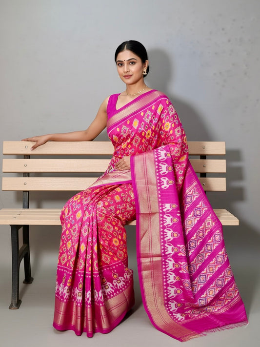 Daisy – Fuchsia Pure Ikkat Silk Saree