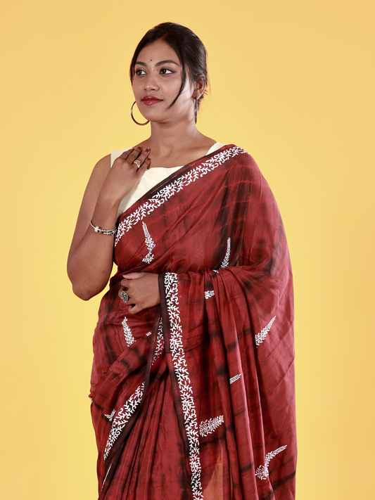 Hand Block Printed Muslin Saree - Mayuri