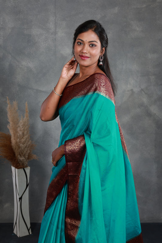Tamira – Semi Tussar Silk Saree in Turquoise with Purple Pallu