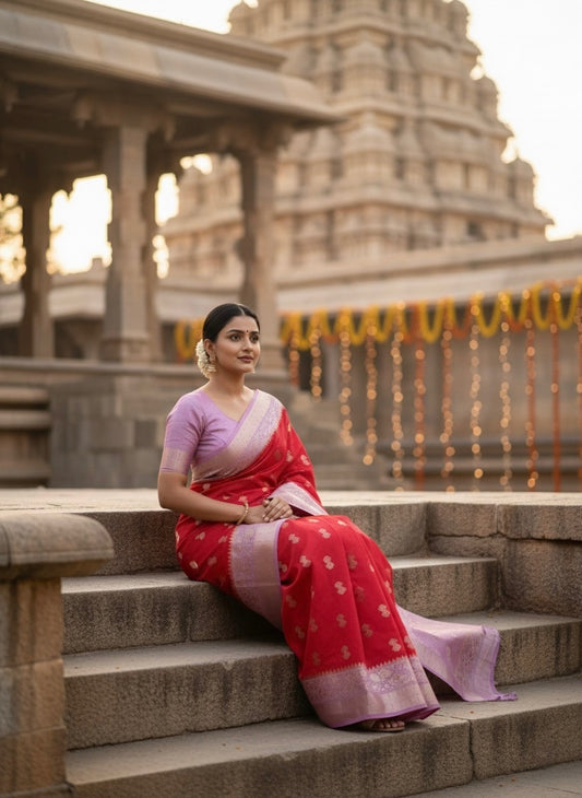 Aarohi – Red Orchid Banarasi Katan Silk Saree