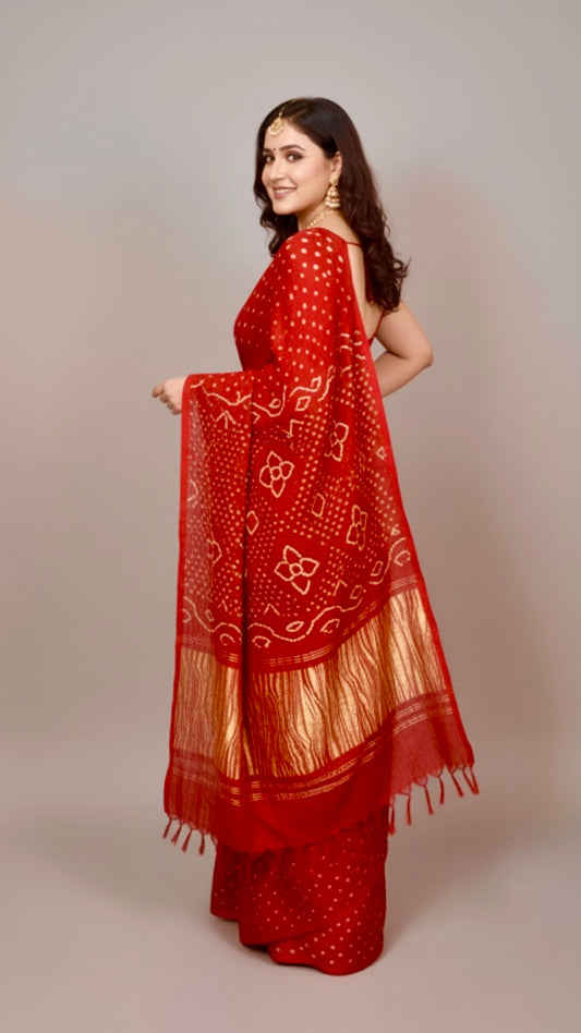 Rudrakshi Modal Silk Bandhani Saree With Tissue Pallu