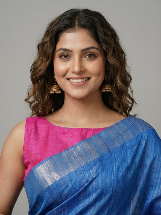 Soubika -Pure Plain Tussar Ghicha Silk Saree (Silkmark Certified)