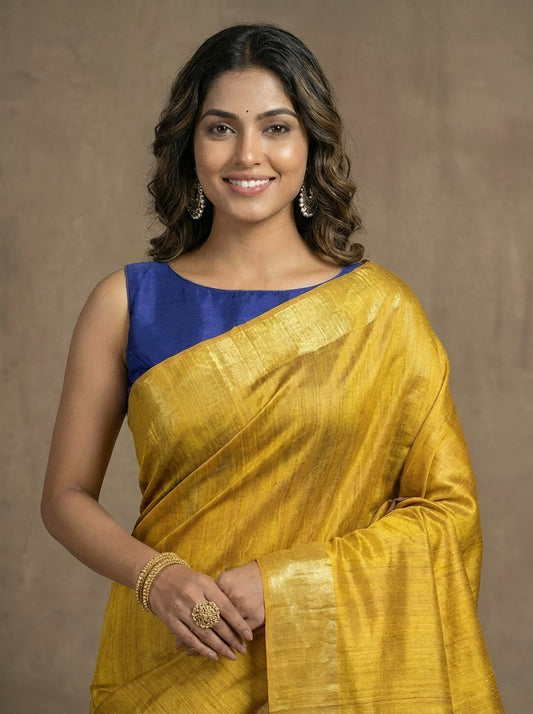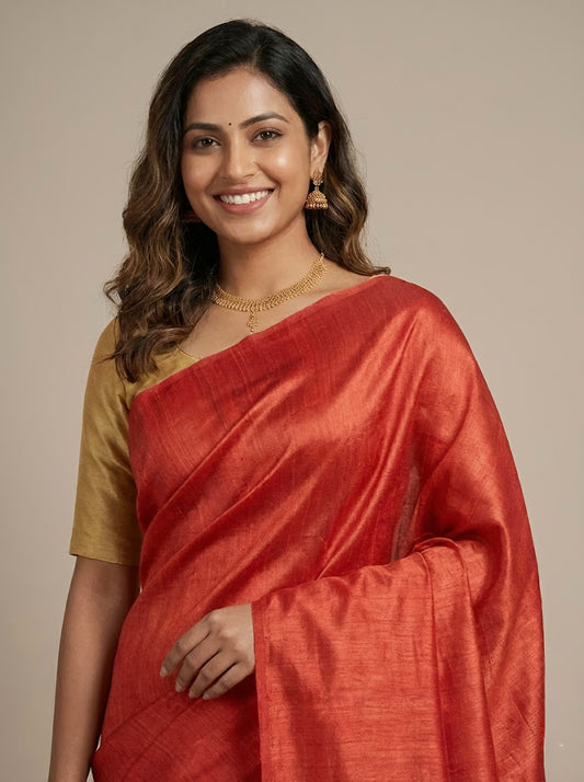 Mangala -Pure Plain Tussar Ghicha Silk Saree (Silkmark Certified)