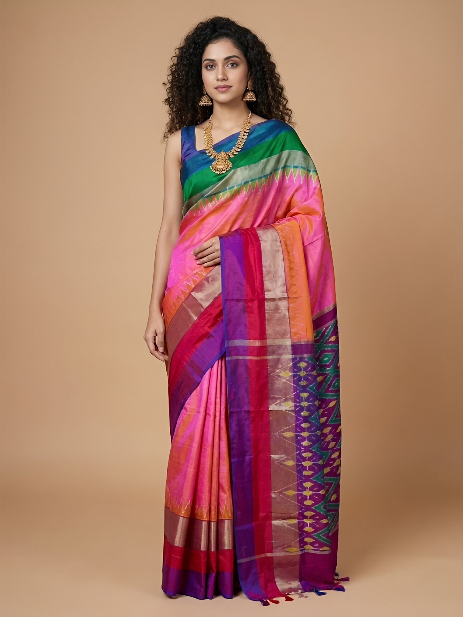Noorjahan – Pochampally Double Ikkat Pure Silk Saree (Silk Mark Certified)